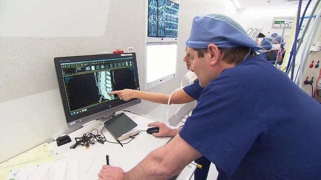 Dr Steel performs first image guided percutaneous pedicle screw fusion in Australia.